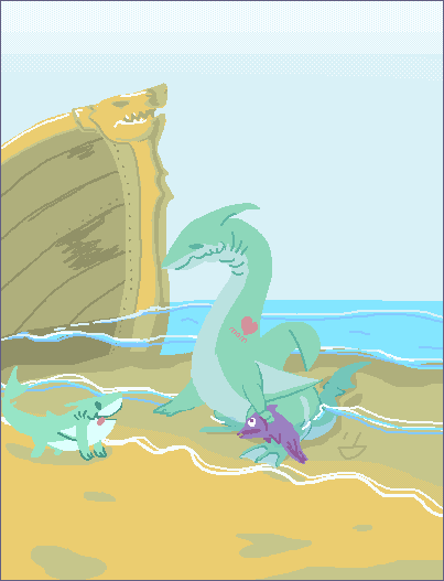 상어 손주에게 밥을 주시는 상어 할아버님을 주제로 하였습니다.