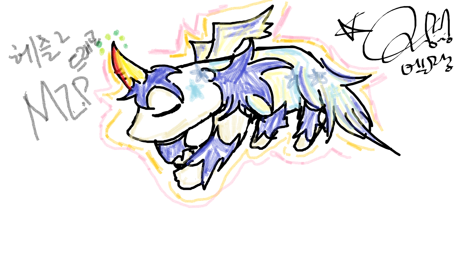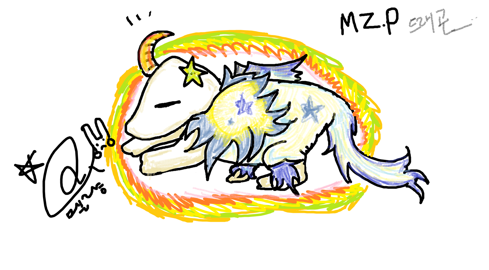 얼굴과 꼬리에 큰 별이 생겨 헤츨링이 되었을떄 얼굴에