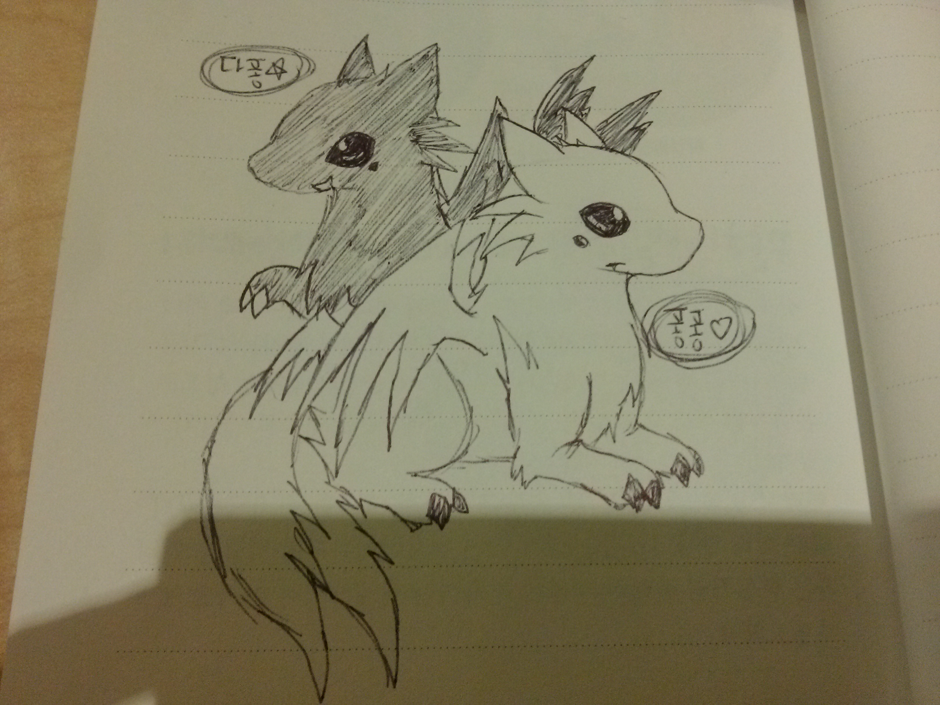 앜.... 너무 커서 죽겠어요...ㅠㅠ 씨엔블루언니 의인화로 그렸던뎅....저는 의인화에 소질이 없으므로 드래곤으로...  다퐁이는 퐁퐁이의 친구이므로(?) 추가로 그려봤찝니다...