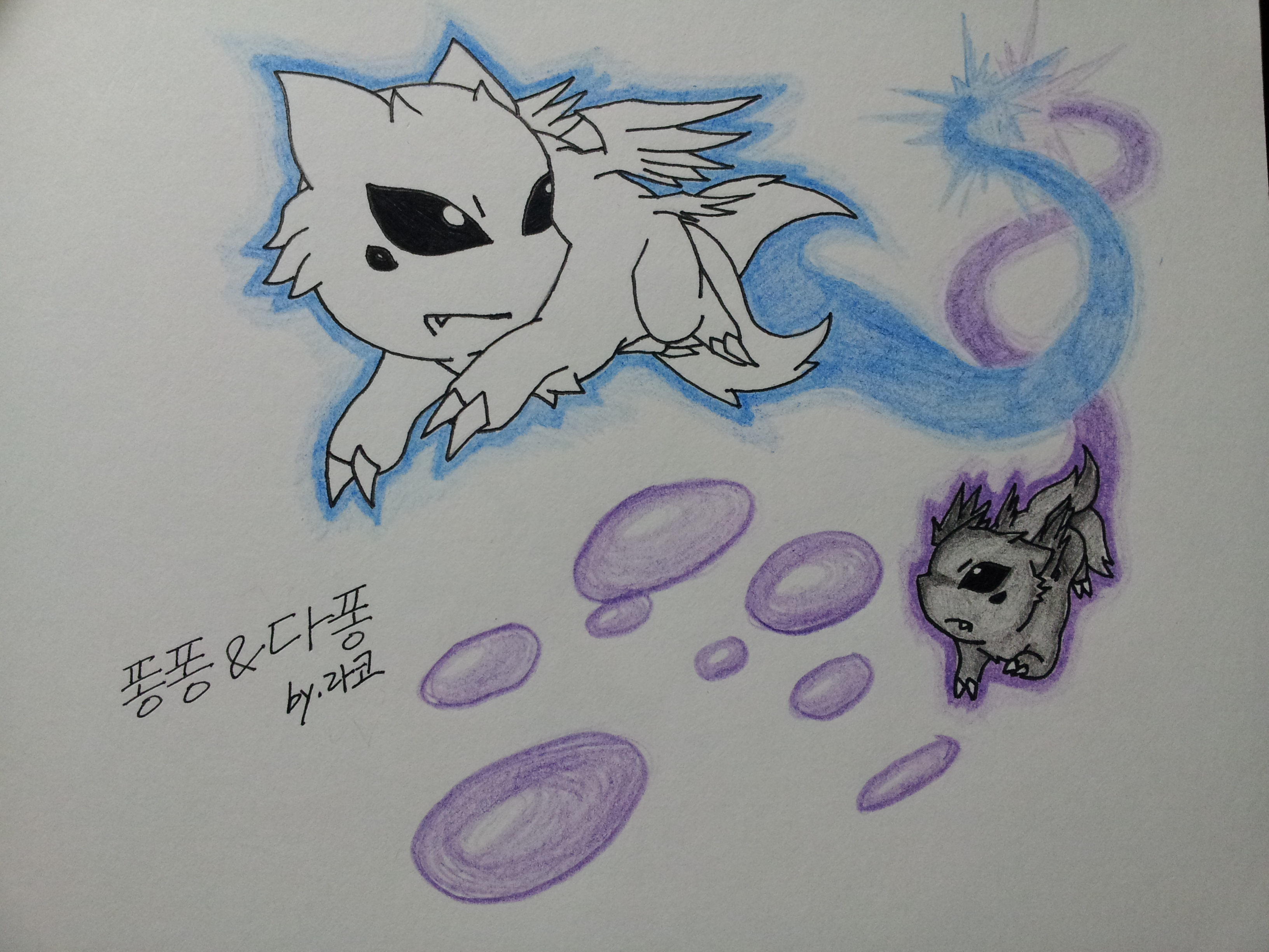 퐁퐁이랑다퐁이전투신을그리려고했는데, 그냥 비눗방울놀이군요 ㅇㅇ '라코가르쏭'이(가)퐁퐁이호감도+3을획득했다!!!