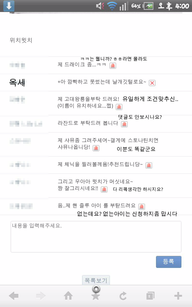와 이렇게 댓글보기 귀찮으셔서ㅋㅋ 그리고 한분빼고 용이름만 딸랑말했네요ㅋㅋ