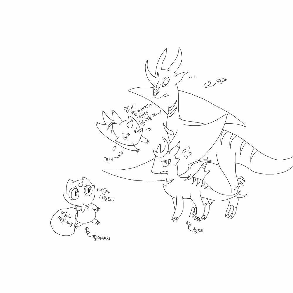 막내는 할아버지가 자기보다 동안이라고 슬퍼합니다..(그림에 쓴 글씨가 안보일려나..)