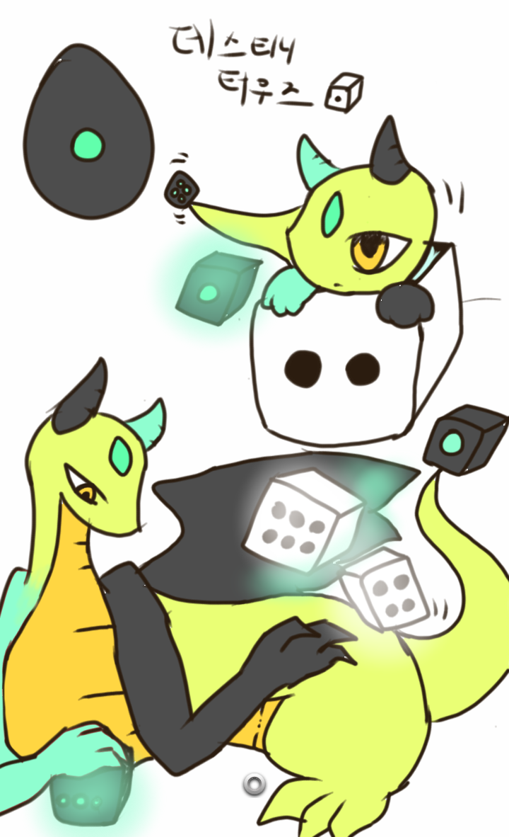 이 드래곤은 회색의 주사위와 흰색 주사위를 가지고있다