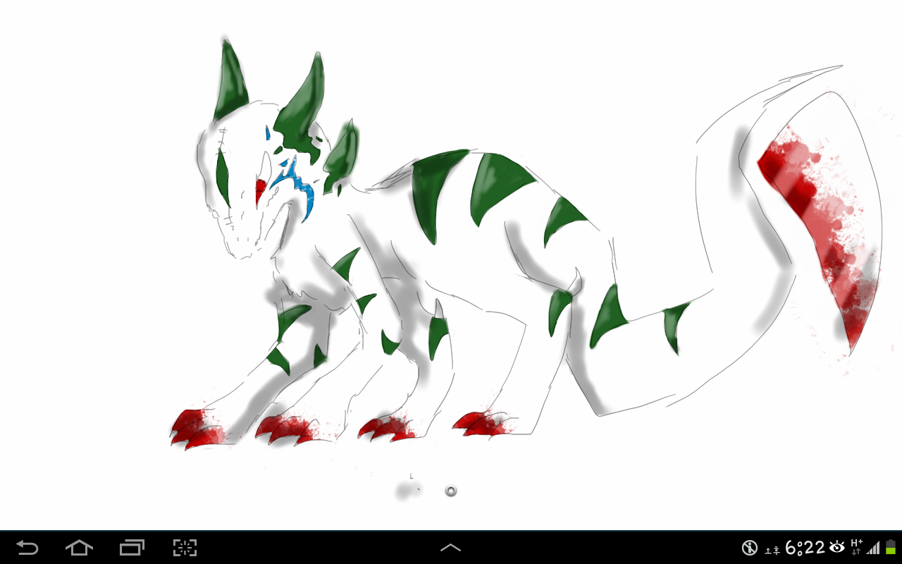 눈 옆에 파란거 무늬입니다!! 검사가 모티브고 남아에요
