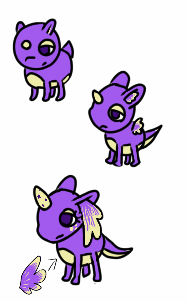 뿔에 보라색 별은 해츨링에도 조금 있어요