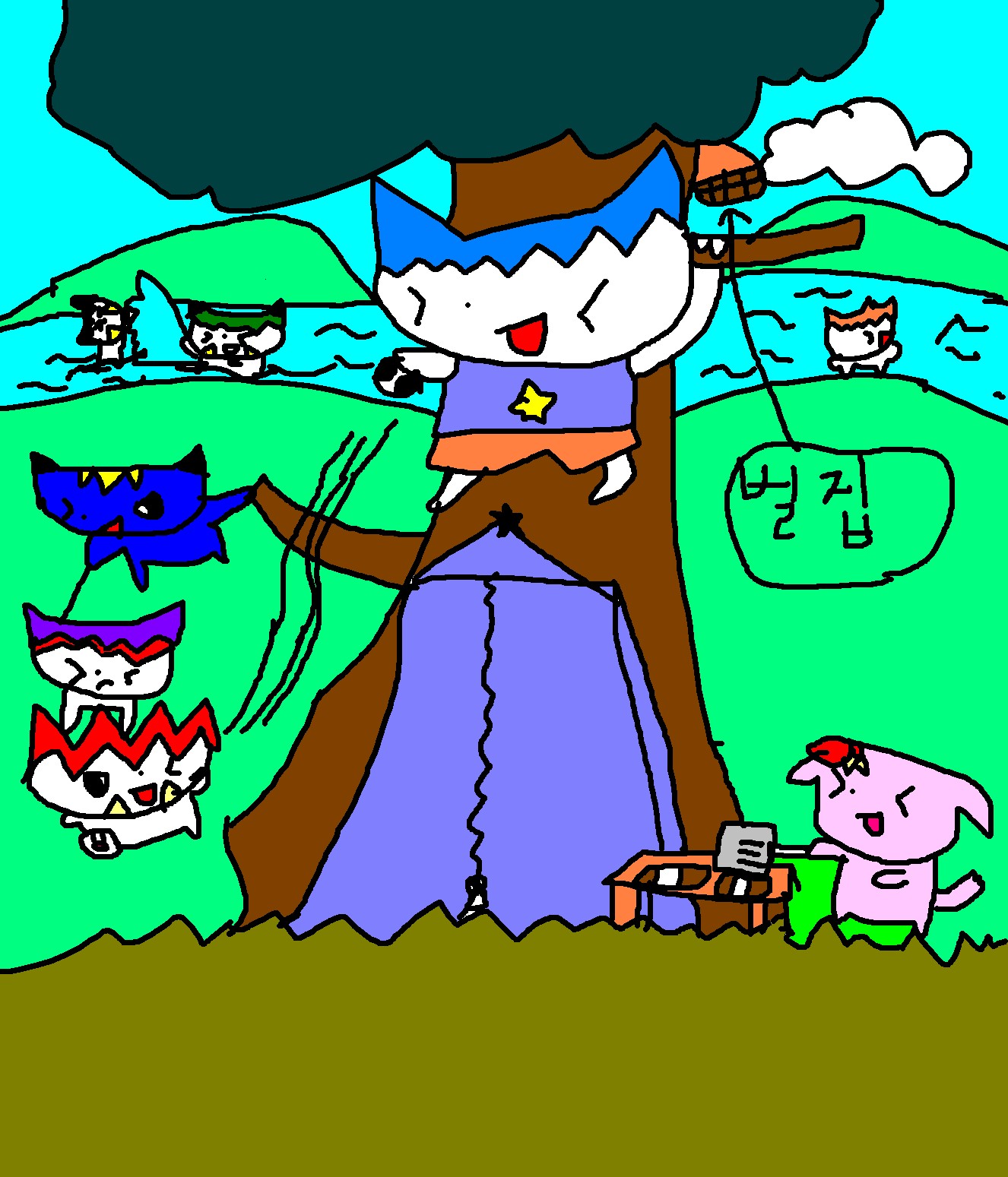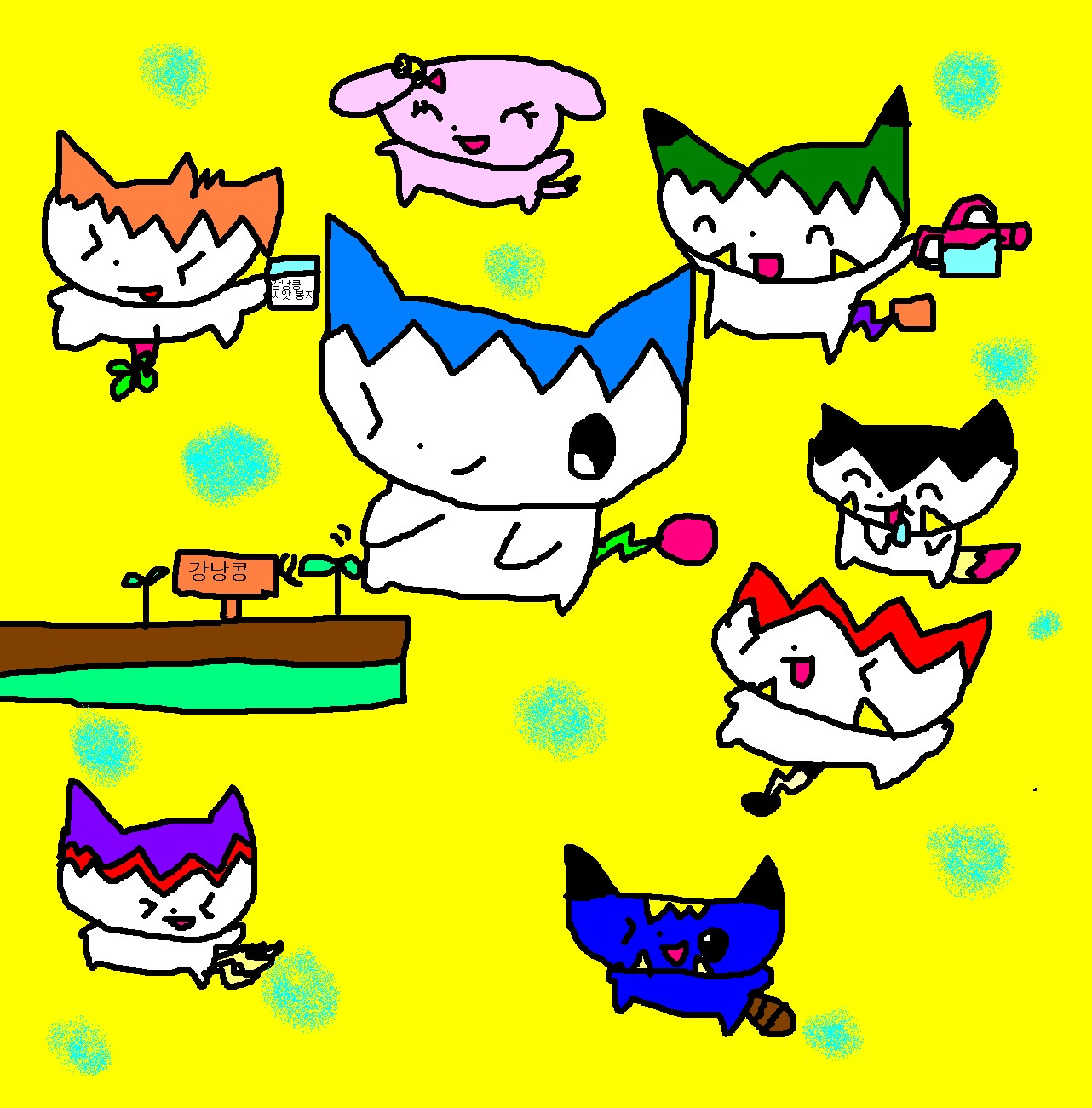 저~~~~~기 가운데에 하늘색 머리가 스카이예요~