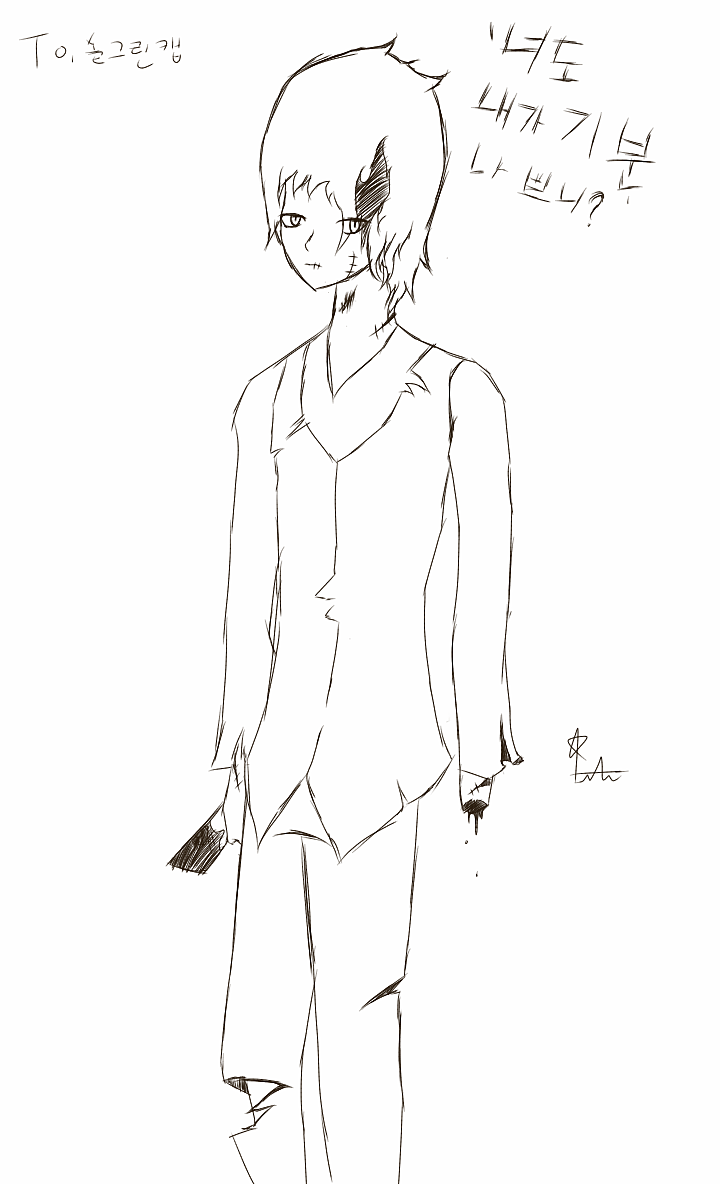 젤리곰님 아브스'내가 웃는건 거짓이다'해석:본 그림에는 아브스의 몸에 상처가 없지만 마음에는 상처가 여러군데 나있습니다는 망한...ㅠㅜ 지못미ㅠㅠㅠㅠㅠ<<