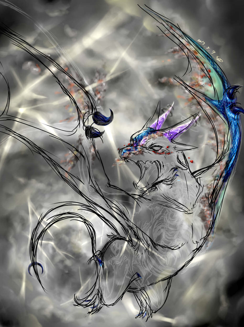 비늘노가다도 용뼈그리기도 수정도 번개배경도 다처음;