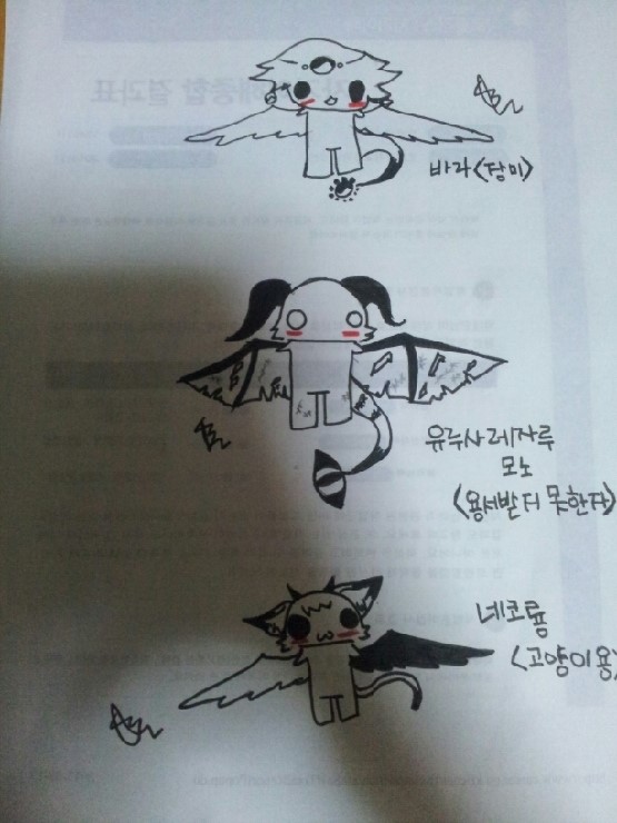 특징및 설명/날개가 악마와 천사날개로이루어진 고양이다