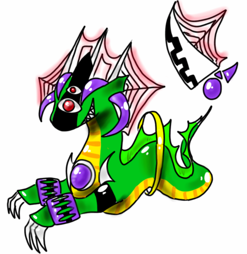 설명:마법을 부리는 뱀 형태의 드래곤. 거미줄깉은 물ㅌㅔ에 다으면 다은 부분이 움직일 수 없게 됀다. 좋아하는 음식은 캥거레빗 드래곤과 작은 소형형 드래곤.