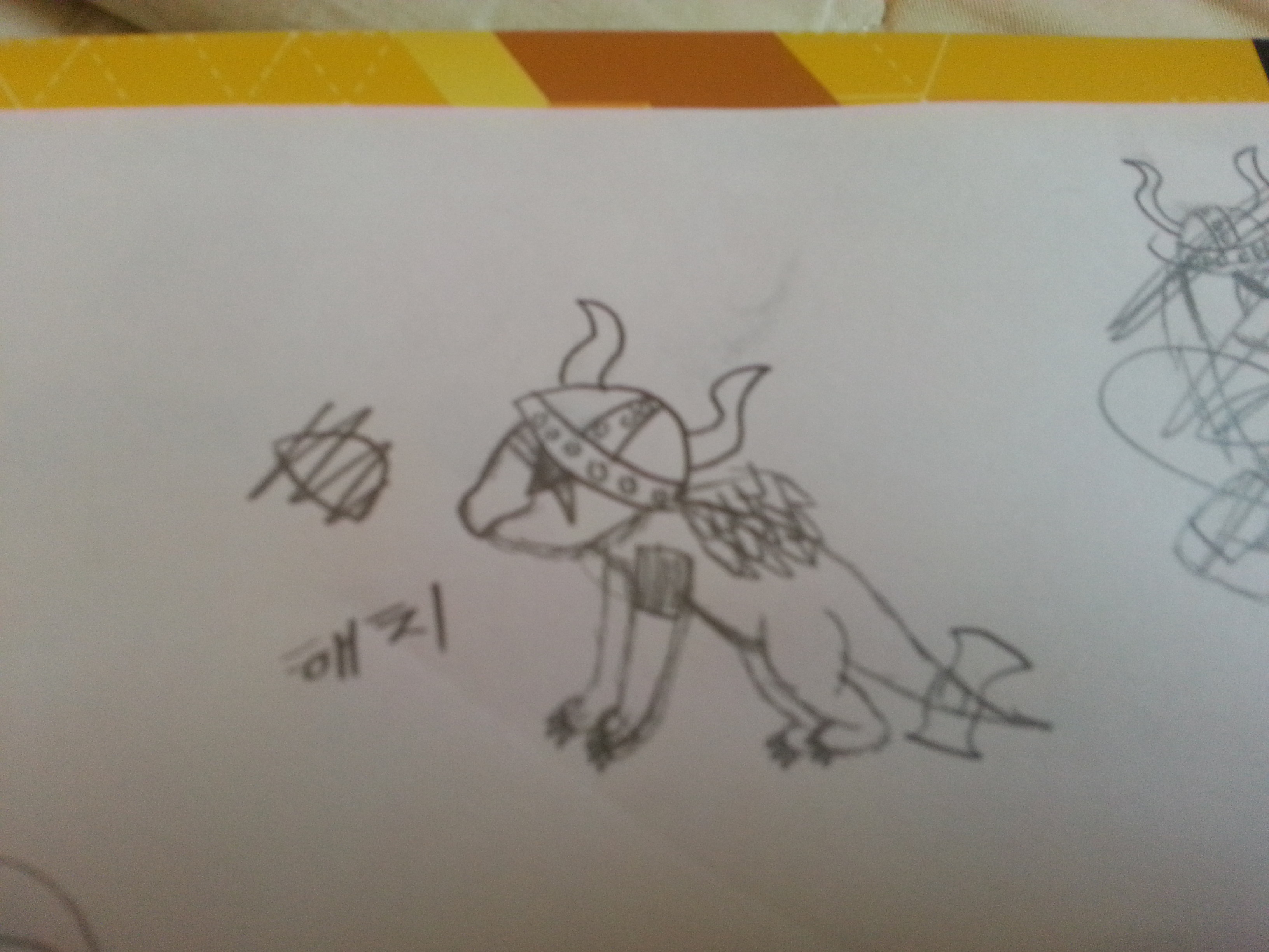 불죽구에요 색칠은 안했는데 봐주세요 스킬은밑에 그리고 설명 바이킹곤은 갑자기나타나 모든것을 파괴하고 다닌다 성격이포학해서 지금은 알로 봉인해두었다.