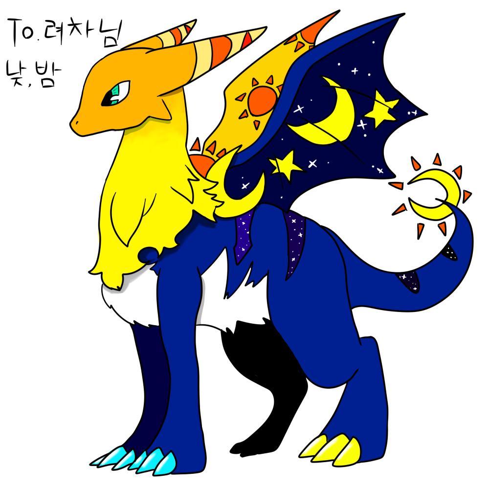 전기은하님 선물룡 모팁을 조 고민해봤는데 노을,그림자라고 해서 몸은 그림자로 이루어져 있고 노을빛이 보이게 그렸습니다.꼬리는 그림자여서 보일듯 말듯한 걸 그렸답니다ㅠ 엘라과자님의 선물룡은 환령술사 이미지를 참고하여 그렸는데 대부분 지팡이 같은것을 들고있어서 그걸 토대로 그렸습니다.