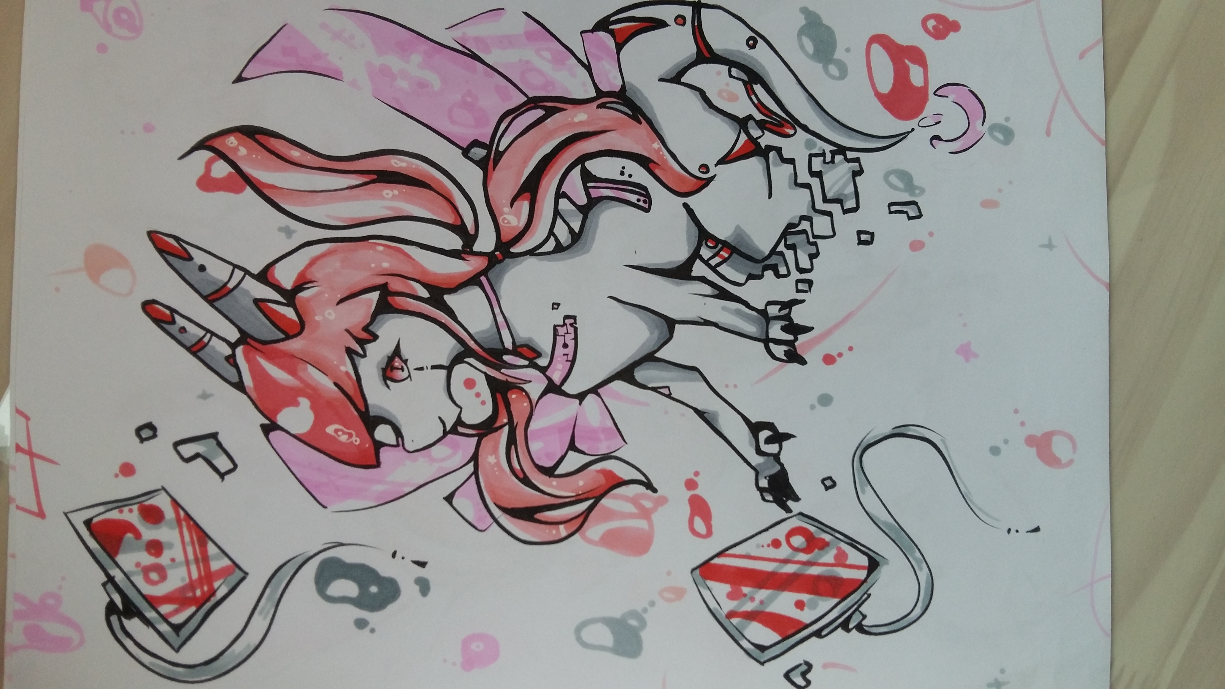 머리를 세갈래로 나눠서 묶고다니는 분홍머리카락드래곤.