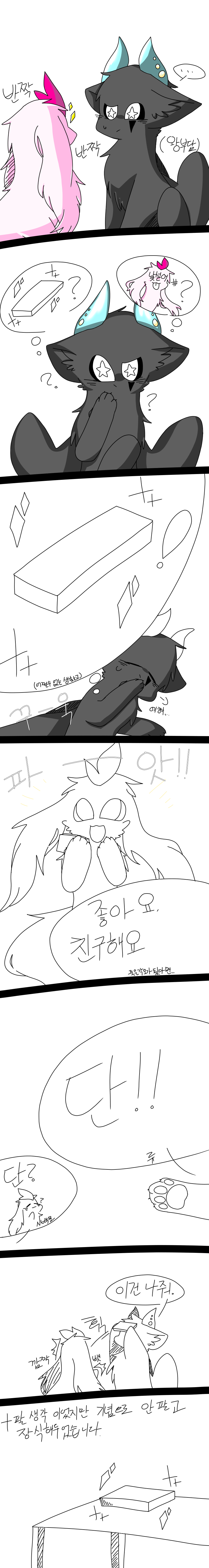 큐큐큨큐ㅋ.. 제가 역량이 부족하단걸 알면서도 한번 만화처럼 풀채색도 해보자!! 라는 생각에 풀채색도 못하고..(중간부터 너무 귀찮았어요...) 새삼 웹툰 작가님들이 대단해 보이십니다..(원래도 그랬지만) 암튼 친신 수락입니다!! 아 그리고 백모 성별이...?