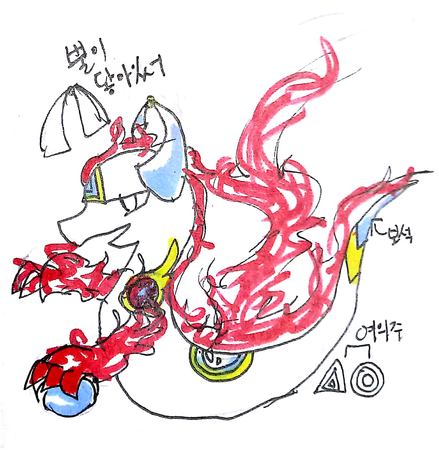 뱀 형태의 몸+여의주+ 화염 모티브 도착