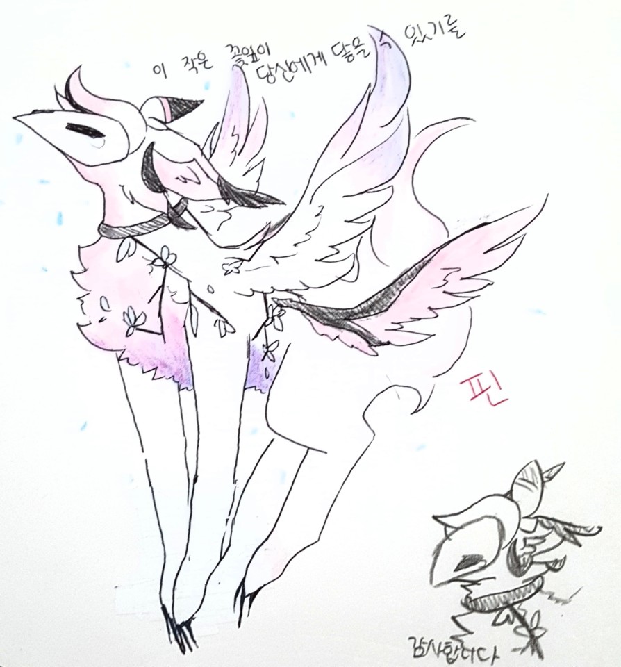 색배치는...대충 몸은 흰색이고 망토?는 분홍색입니당