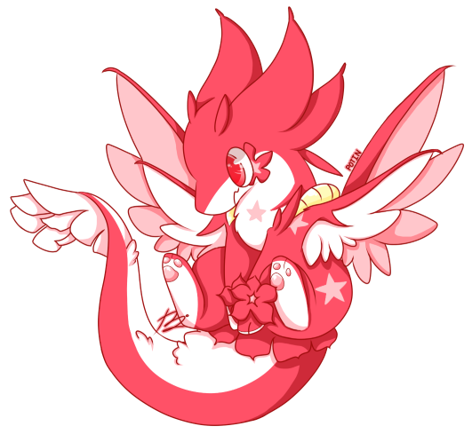 해츨링이 된 페리, 꼬리의 꽃잎이 더 크게 자라났고, 머리에 뿔이 하나 더 자라났다.