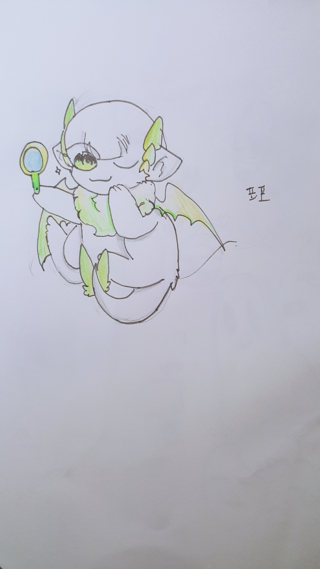 천사와 악마의 혼혈로, 몸은 엄마인 천사를 닮았으나 뿔과 날개는 아빠인 악마를 닮았다.거울을 보는게 취미라고 한답!!