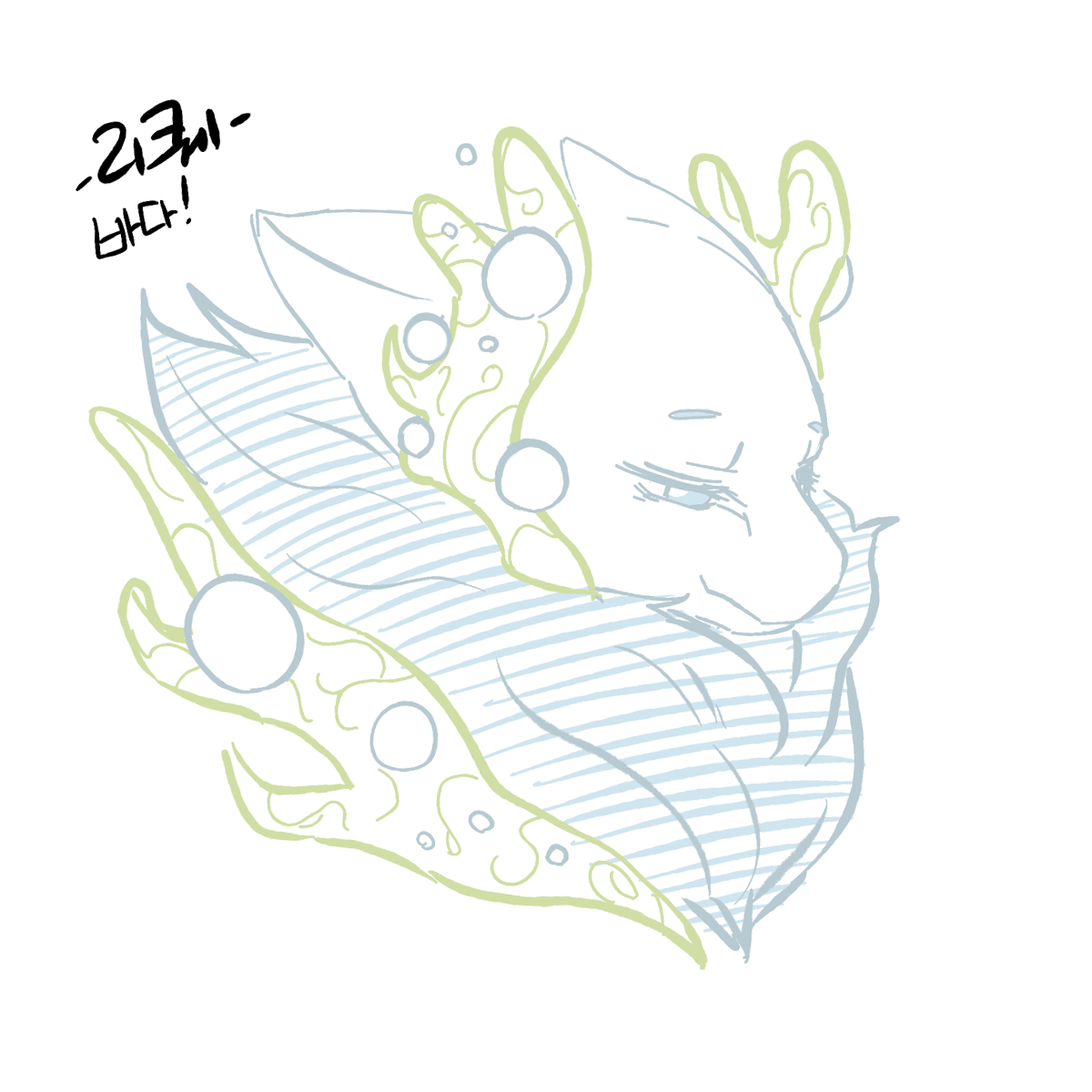 해초의 문양 그리기가 가장 재밌었던 아이. 물방울은 그리기가 가장 어려웠던것 같네요. 원 그리기가 너무 헬입니다, 헬...