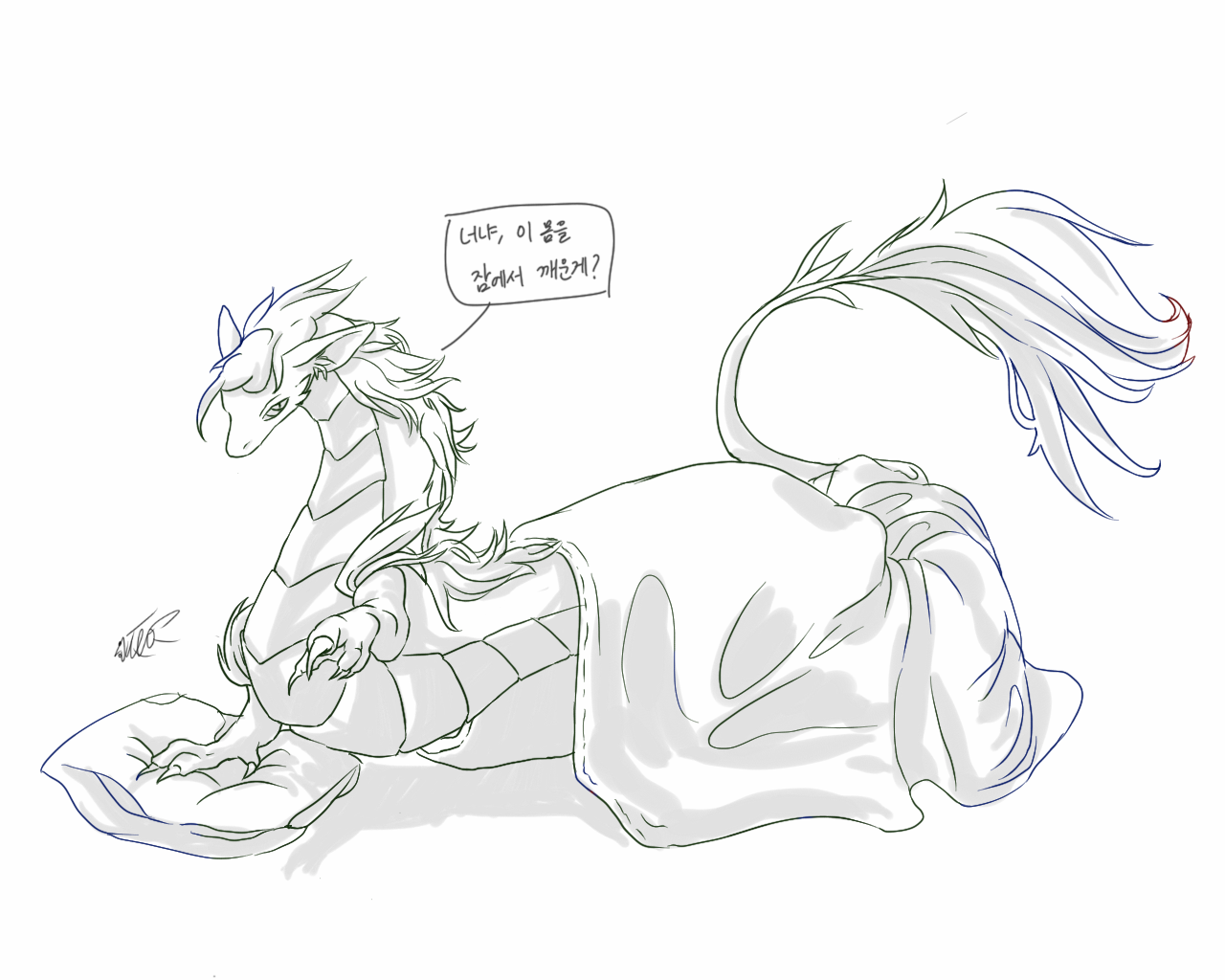 오랜만에 동양룡 그리고싶어서 그렸슴다 채색은 귀찮아서 결국,,