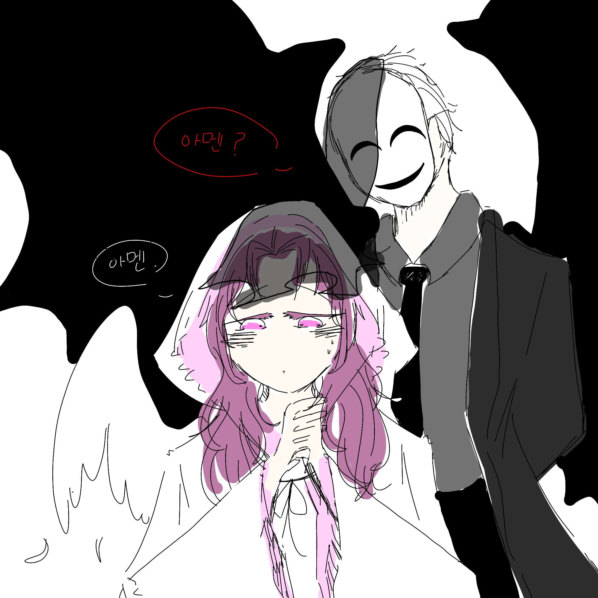 가면쓰고있고, 약간 신비주의,,?