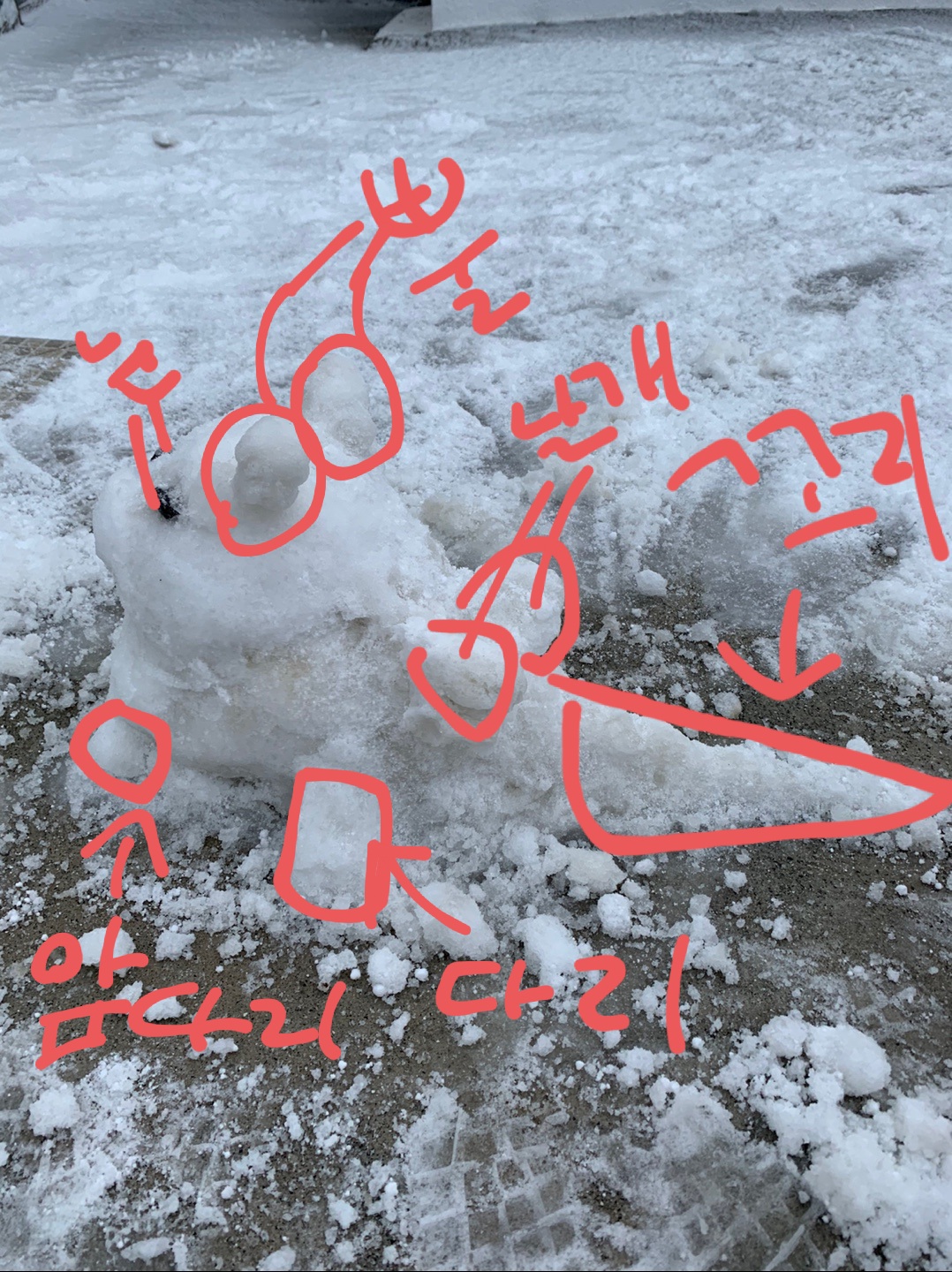 눈으로 드래곤(?)을 만들었습니다