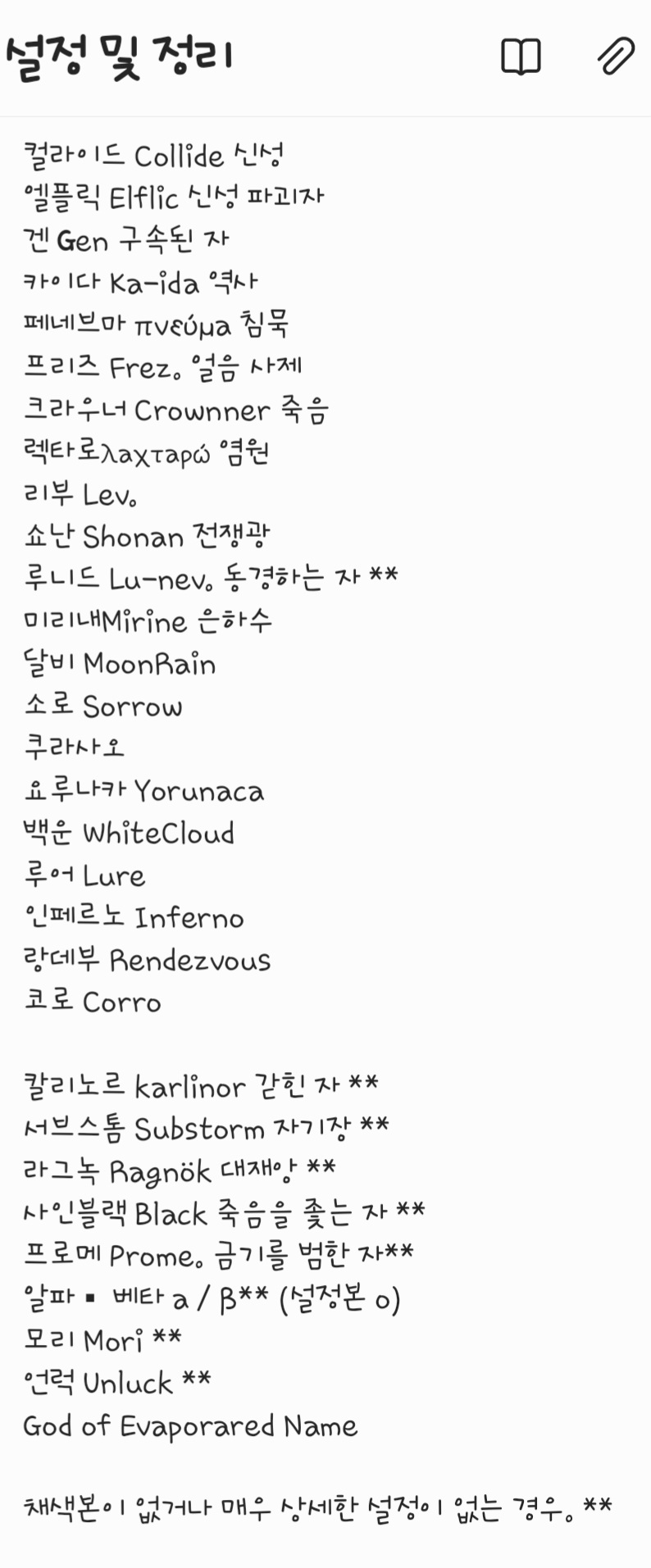 너무 ..많아요.. 다른 분들 자캐 양 보면 적은 걸 수도 있는데 모자란 머리로는 기억하기도 귀찮은..드르렁...