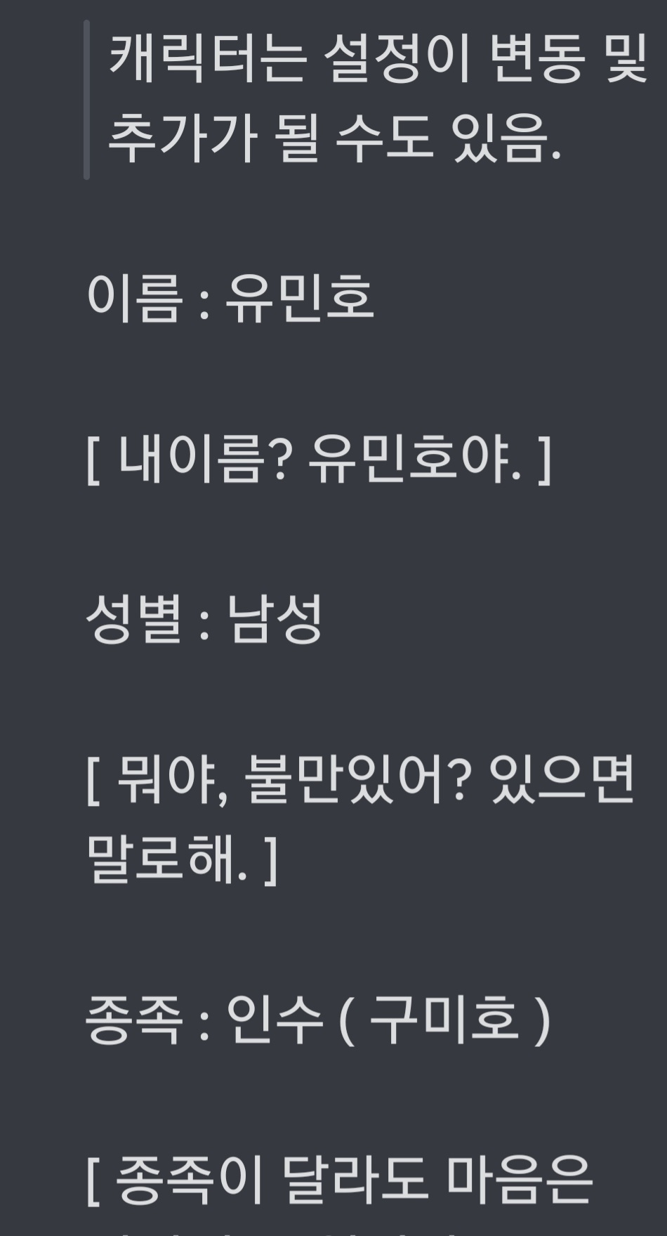 머충 유민호 설정 짠 것이였는데 이 검정색 배경에 하양글씨 적혀진 설정은 다 유민호 관련된겁니다