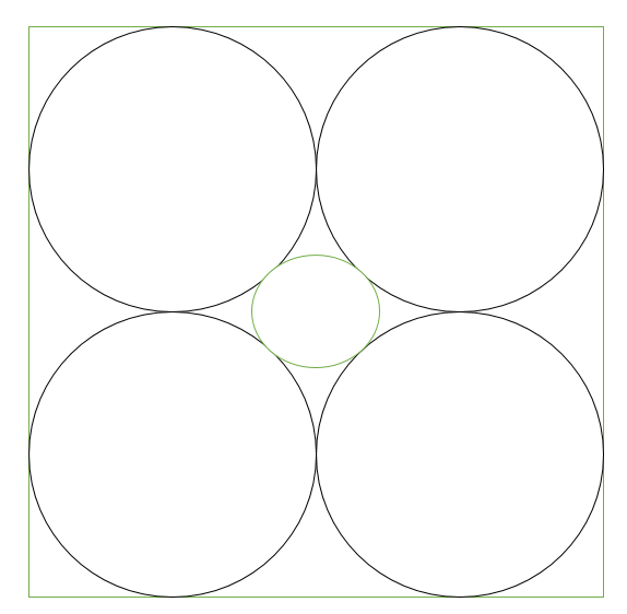15. 정사각형에 반지름이 1cm인 원 4개와 작은 원 1개가 꼭 맞게 들어가 있다. 작은 원의 넓이를 구하면?