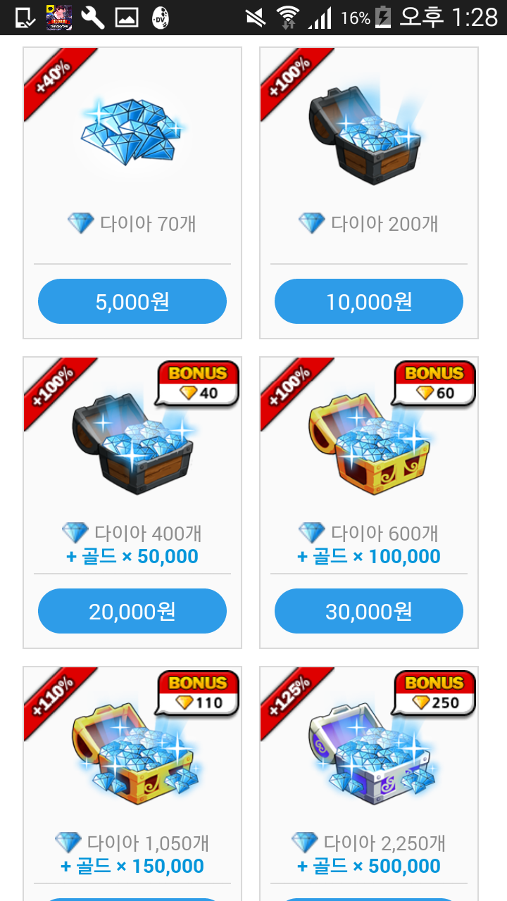 예를 들러 20000만원 어치 지르면 다이아 400개 받음 아니면