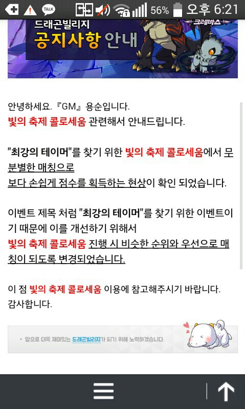 아니 ㅋㅋㅋㅋ동관은 은관 동관 끼리놀으라고하면 어떻게하나여이벤트 제목처럼 최강의테이머라면서 전체 포함해야하는거 아닌가요 레벨 낮으신분 우대해주는것도 아니고;