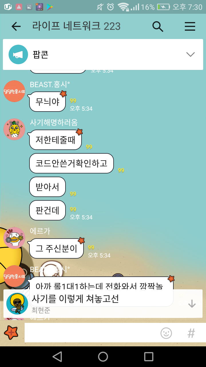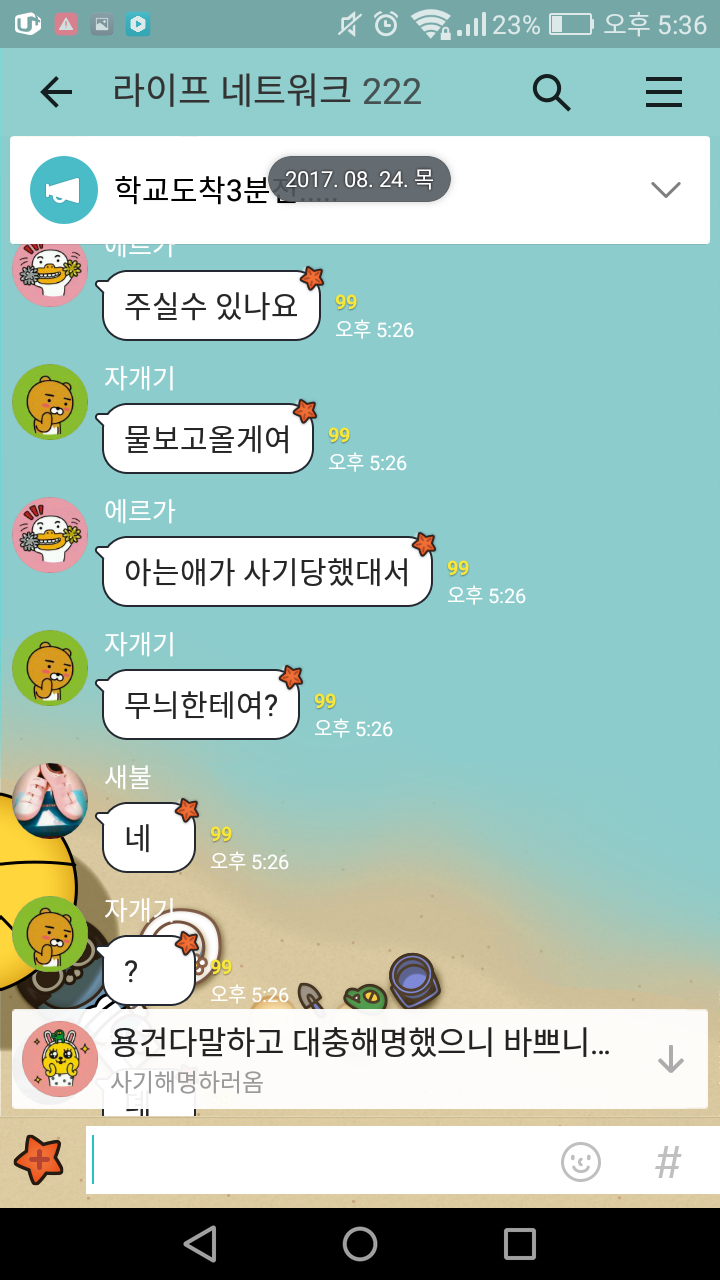 오늘 5시25분에 르가형이 단톡방에들어와서