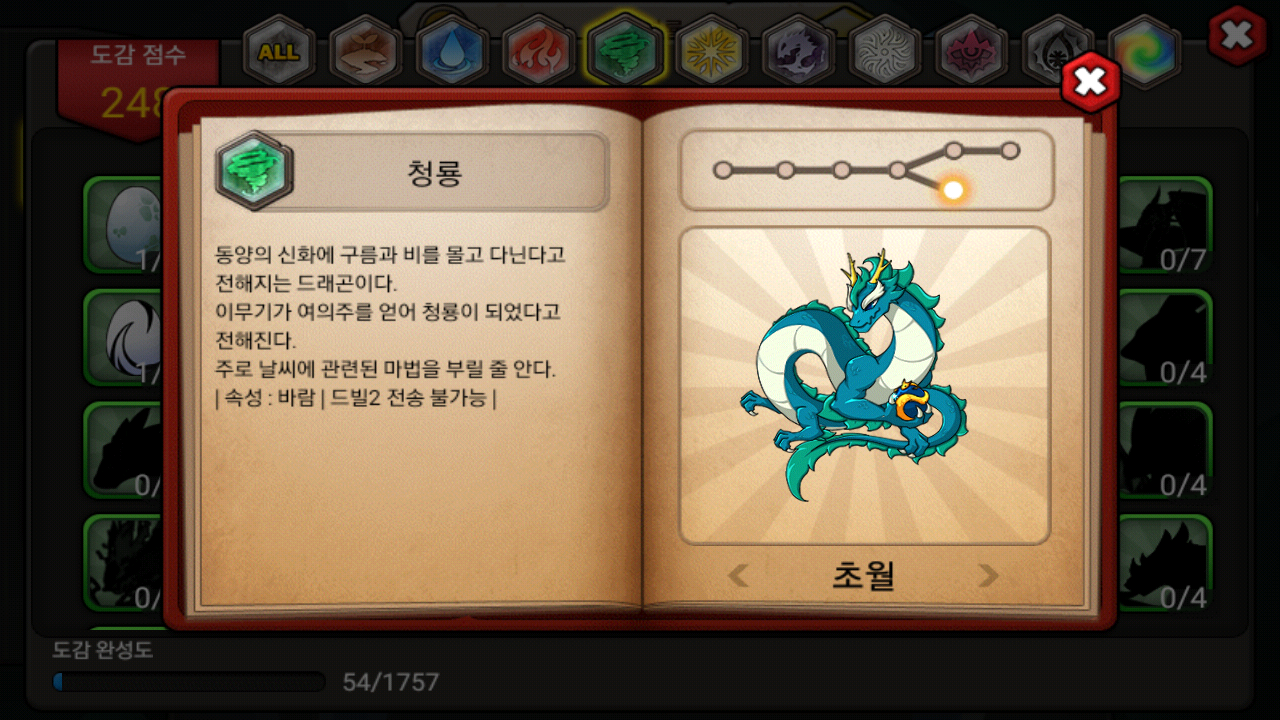 청룡 초월 만든적 없는데 도감이...