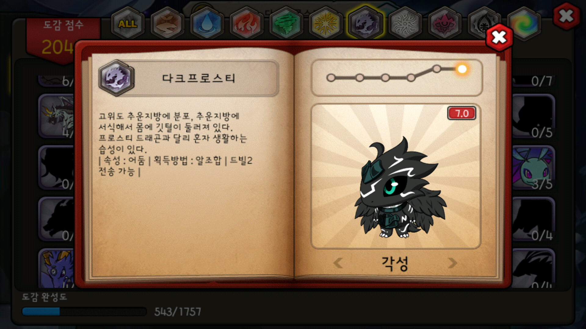 그날은 빛축 축제 기간 출첵 중 다이아 100개를 주는 날이었지요. 아싸 ㄱㅁㄸ를 외치면서 흑룡과 백룡과 의문의 알을 조합했지요. 다크프로스티가 나오더군요.