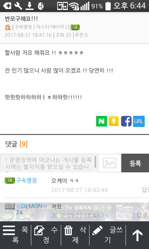 다들 반모 환영합니다 낄낄