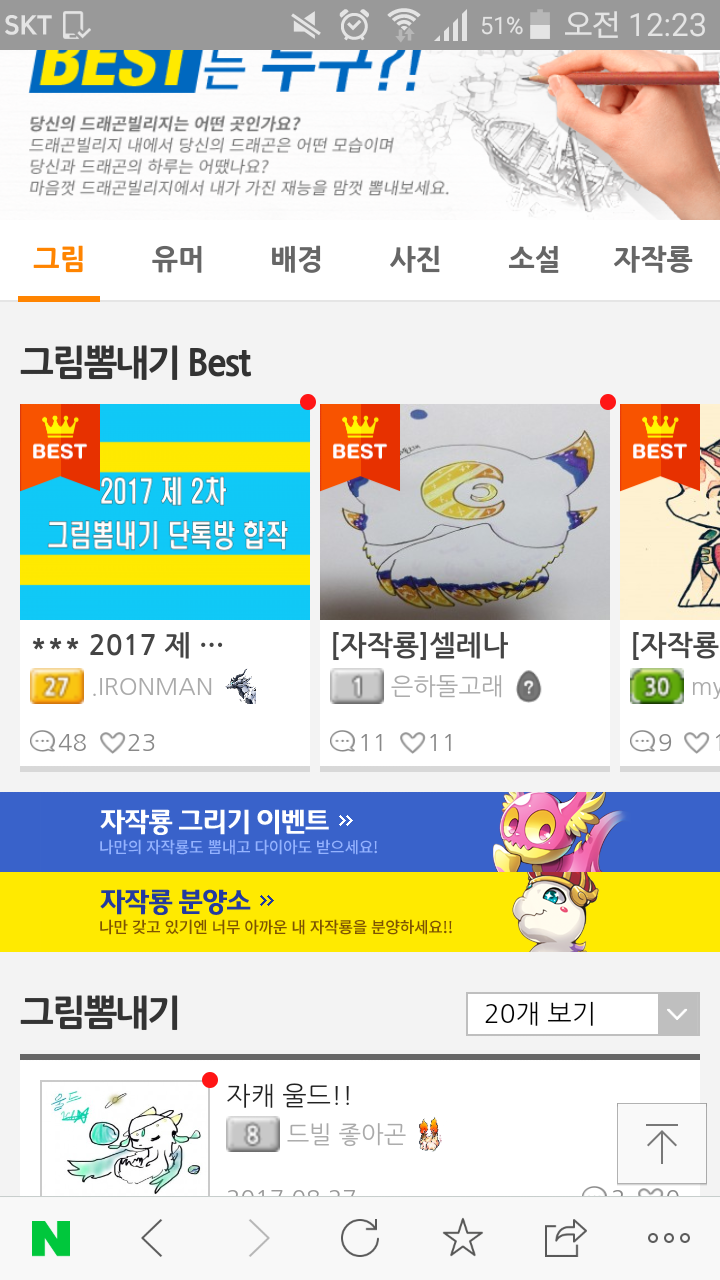 그림뽐내기?에 은하돌고래 <<제 실친이 자작룡 올렸는데 많이 봐주세요....