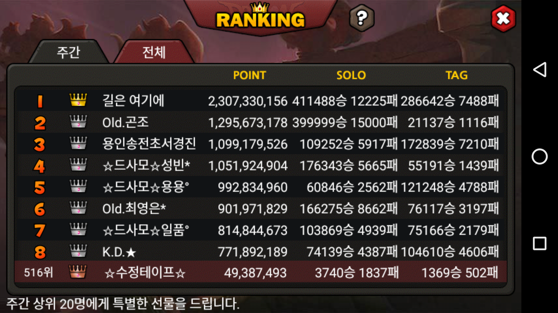 도감점수가 들어가더니 크흠....