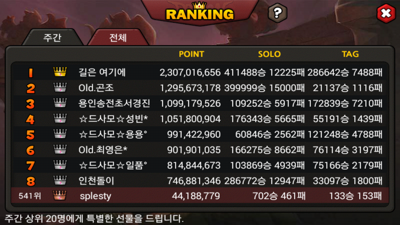 도감에 비례한 양의 PVP점수를 영자님께서 주신 나머지...