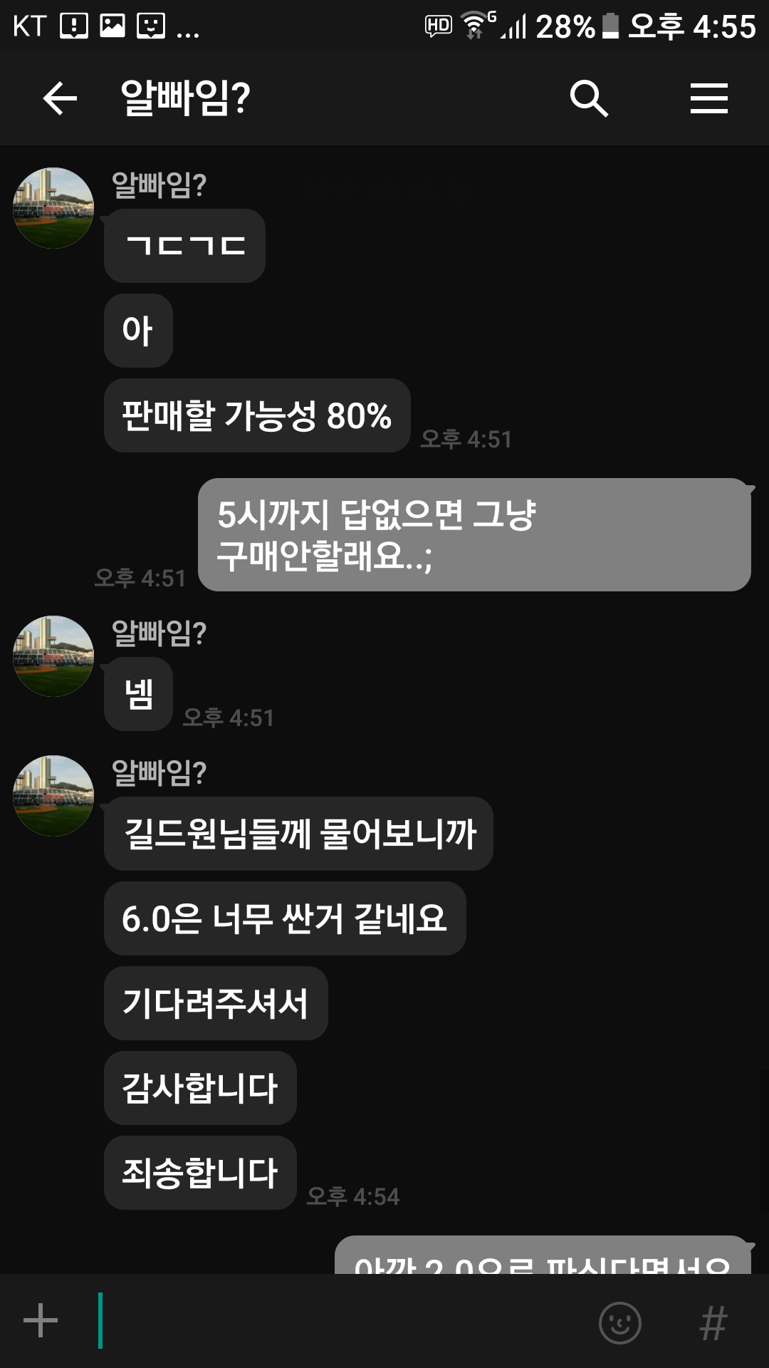 2.0에 판다고 글올리더니 톡하면서 점점올리더니 6.0에서 기다려보라더니 8.0아니면 안된다고 잘기다리셨습니다~