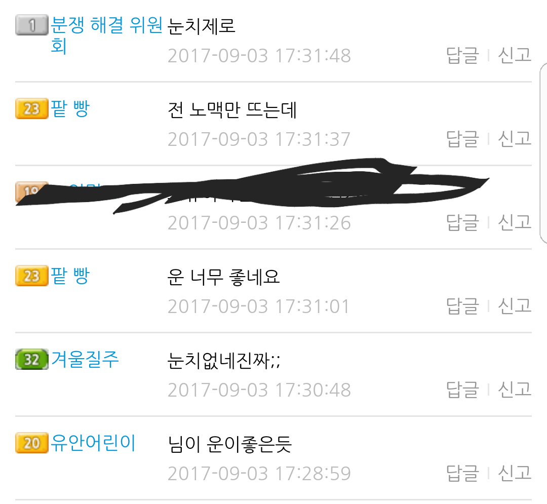 눈치제로?^^ 댓글참 참신하네요 ㅎ오류악용열심히들하시나봐요