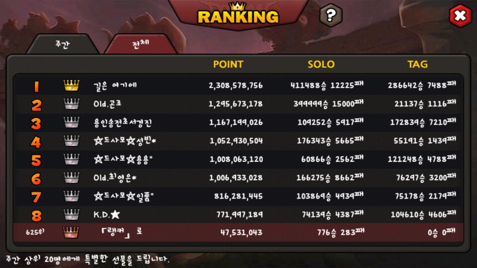 닉네임대로 랭커가 되었습니다