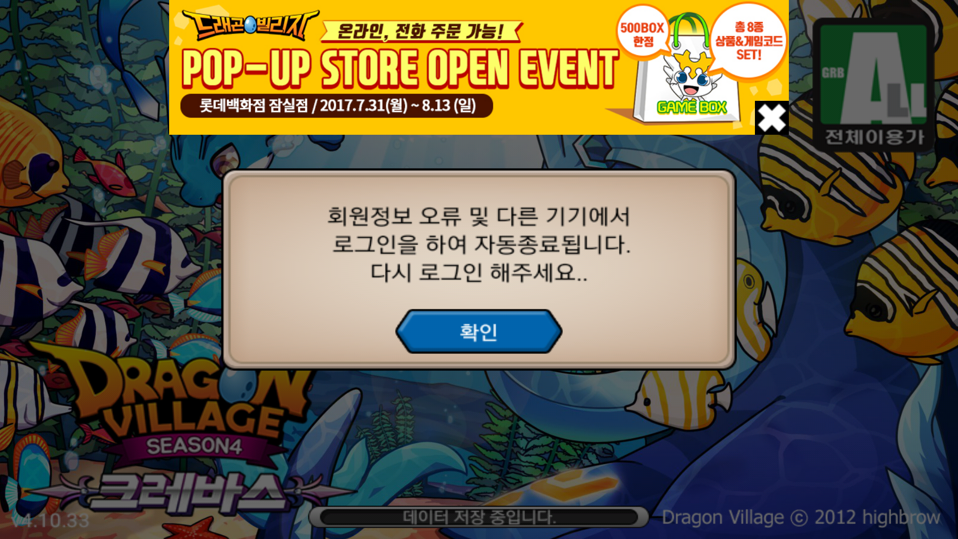 이런거 뜨고 로그아웃됬는데