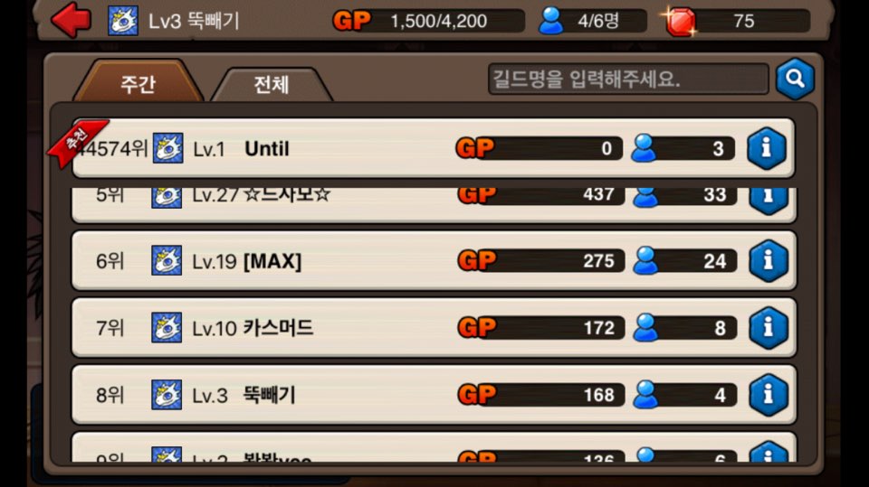저희길드가 저번주 주간8위를차지했네요ㅠ 더노력하는 뚝빼기가되겠습니다~