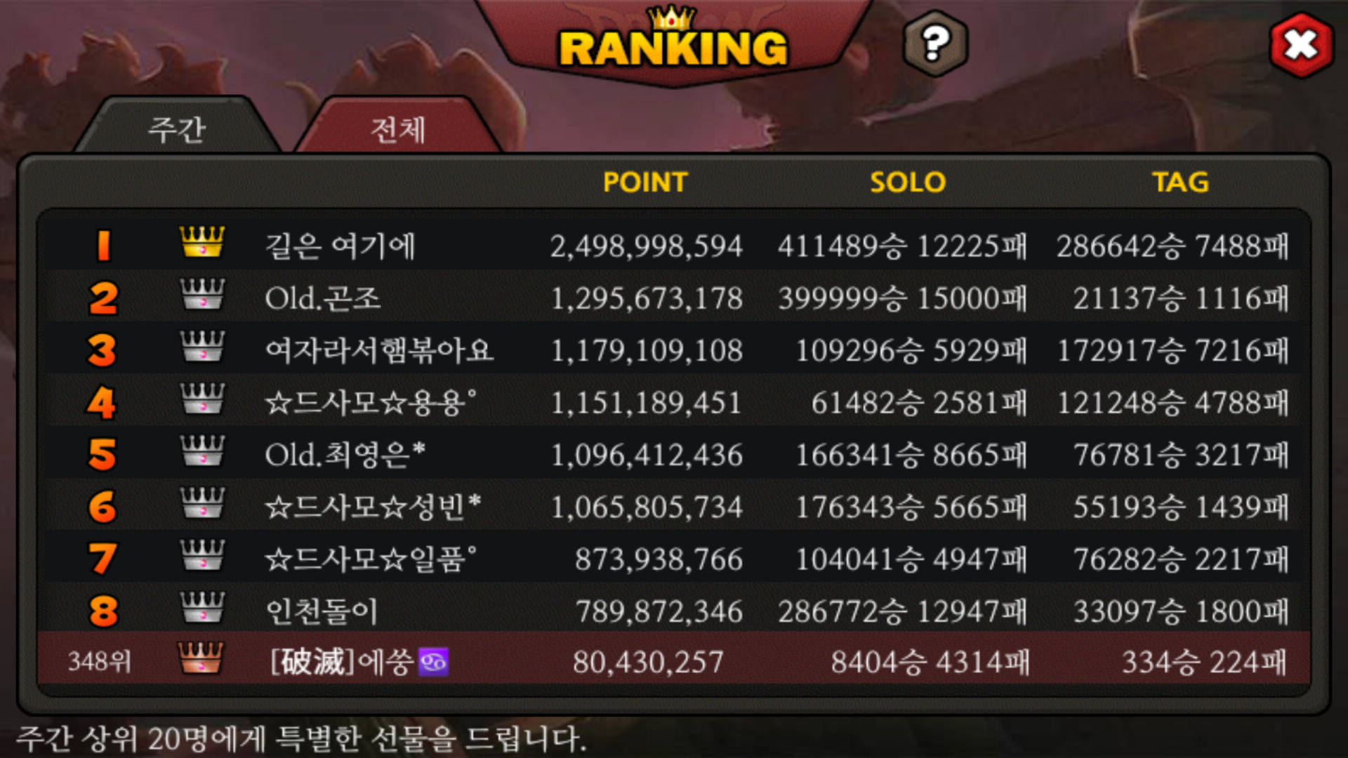 본래 364위정도 되었습죠 .