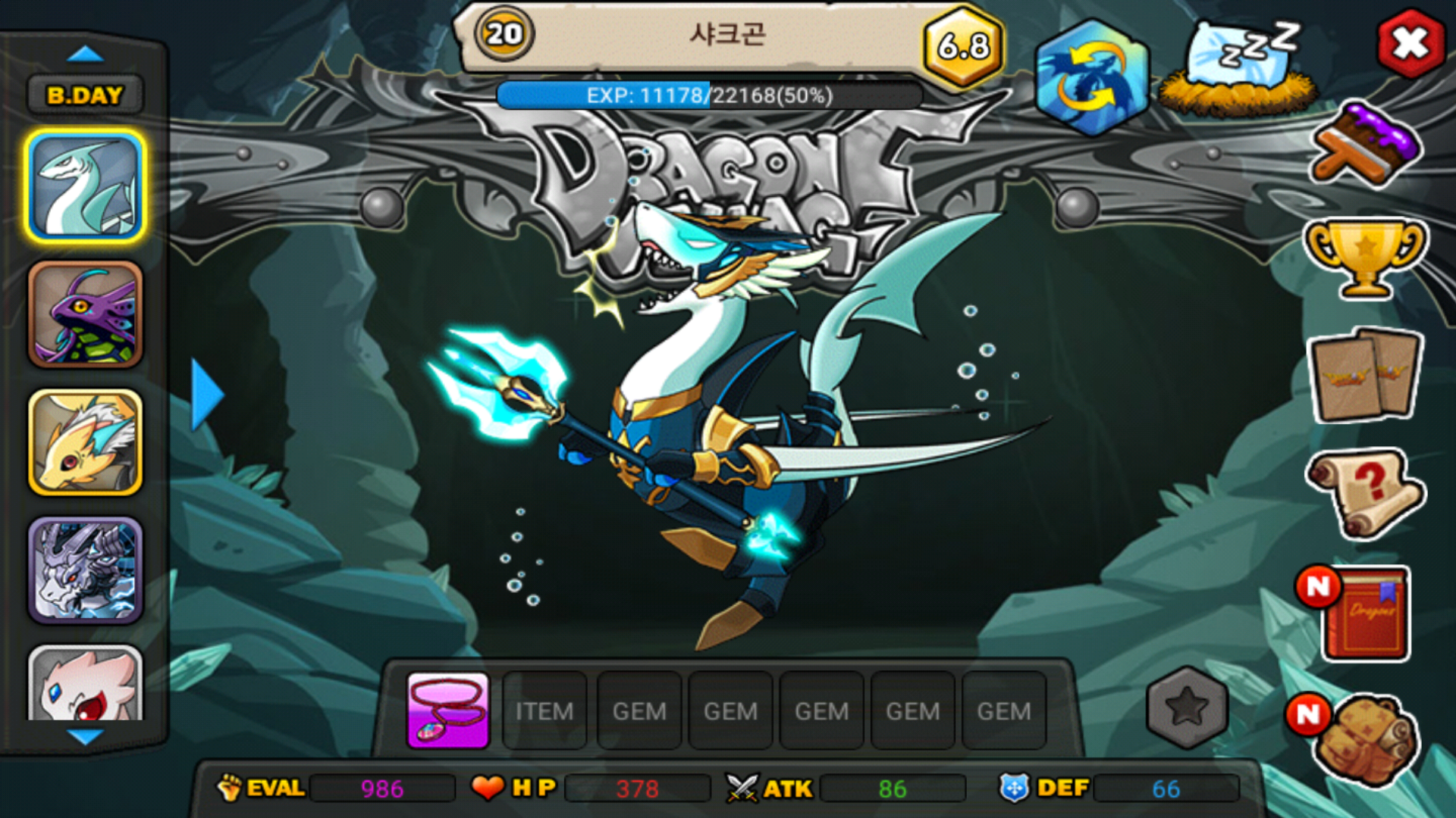 드래곤을 터지하면 스킬 쓰는 모습이 잠깐 나오고 드래곤 옆(오른쪽이나 왼쪽)쪽 터치하면 터치한쪽으로 회전되요