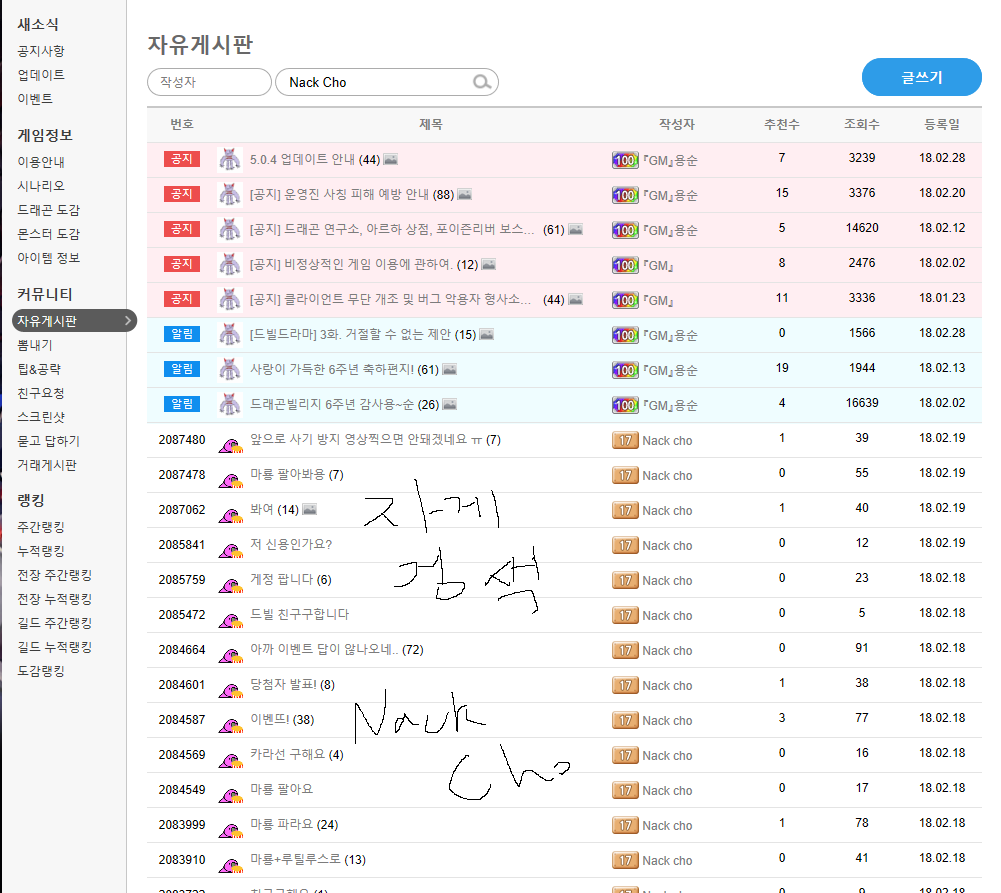 그리고 결정적인 증거로 컴퓨터 자게에 들어가 Nackcho 검색 후