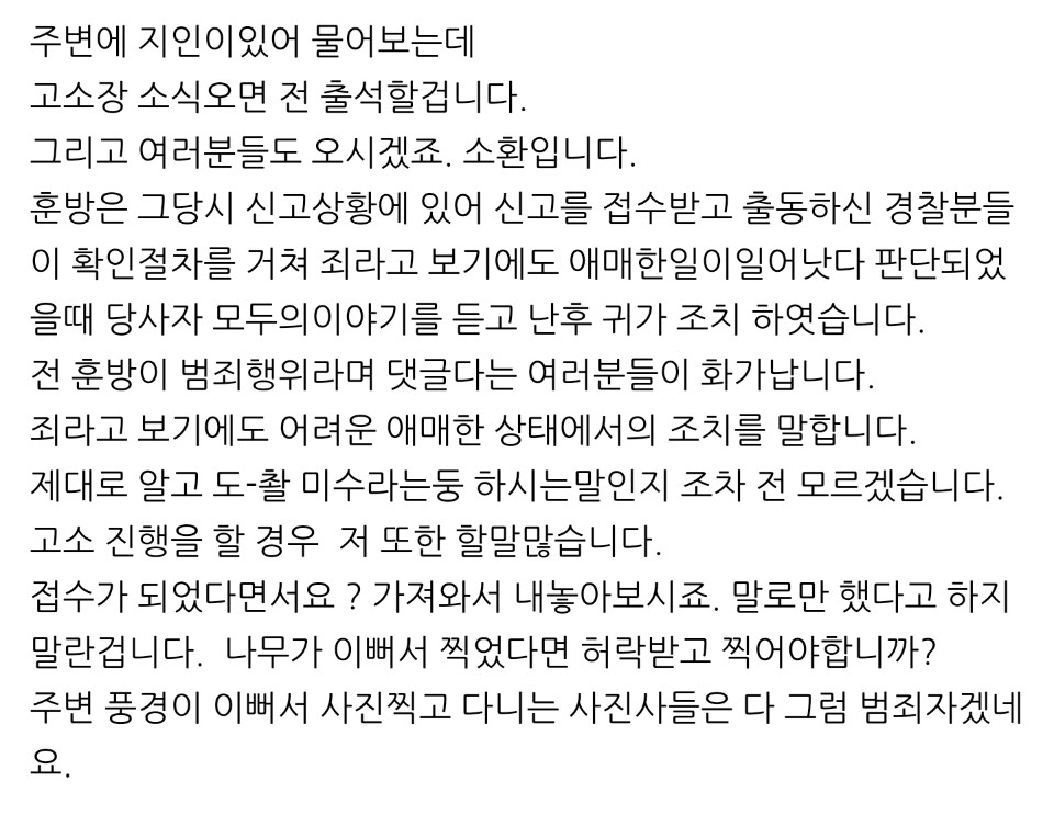 그리고 접수장과 진술서같은걸 니 놈한테 왜 보여주냐? ㅋㅋㅋㅋㅋㅋㅋ 고소를 준비 중이던 말던 너에게 고소에 대한 증거를 보여줄 필욘 애초에 없단다.