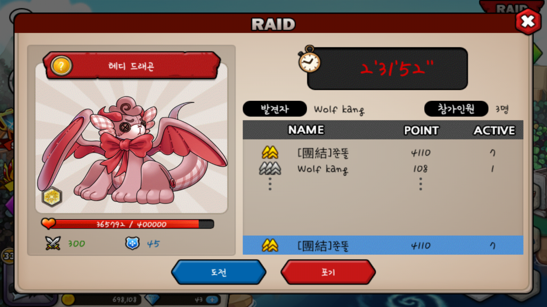 Wolf kang 님한테 친추걸고 같이 테디 잡아요!!!