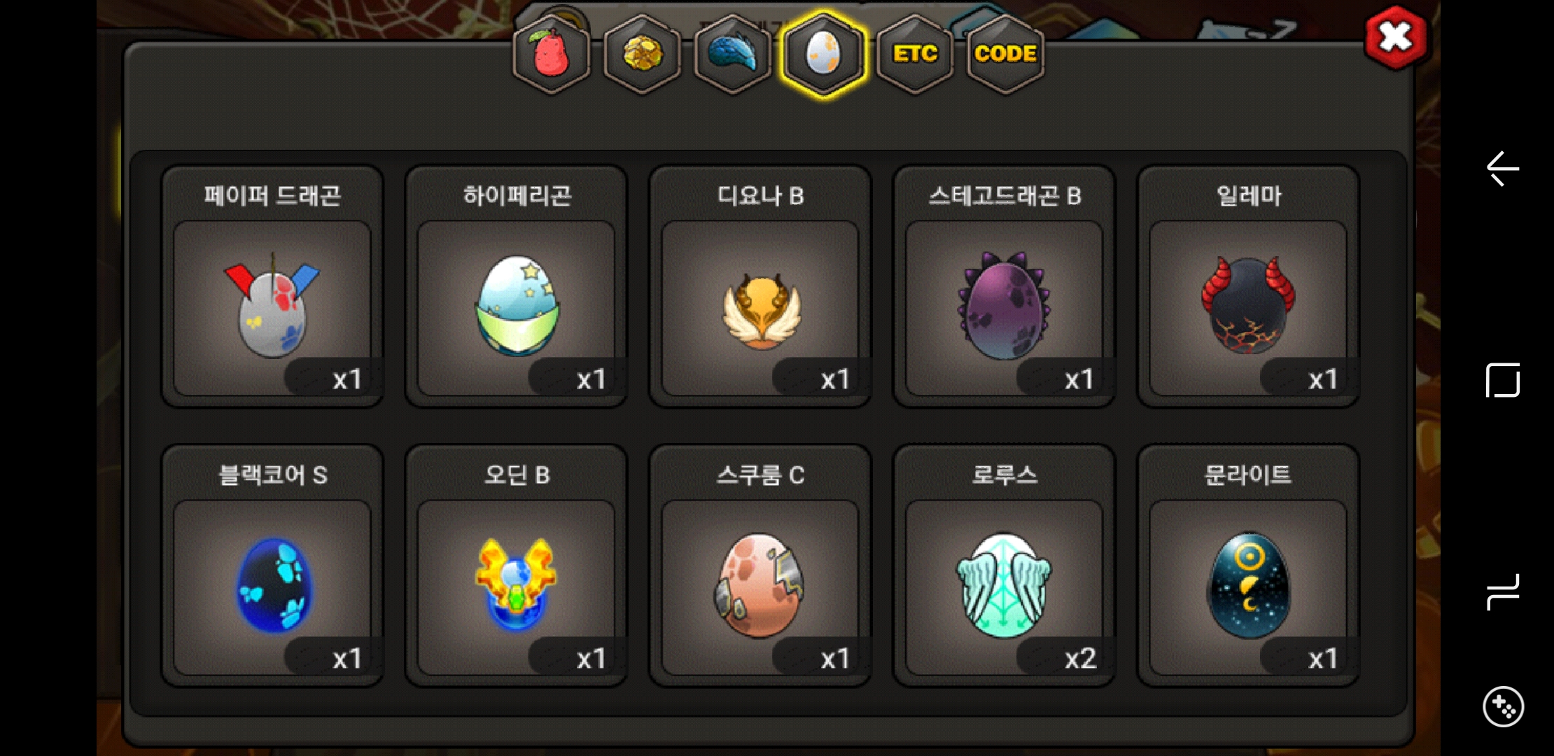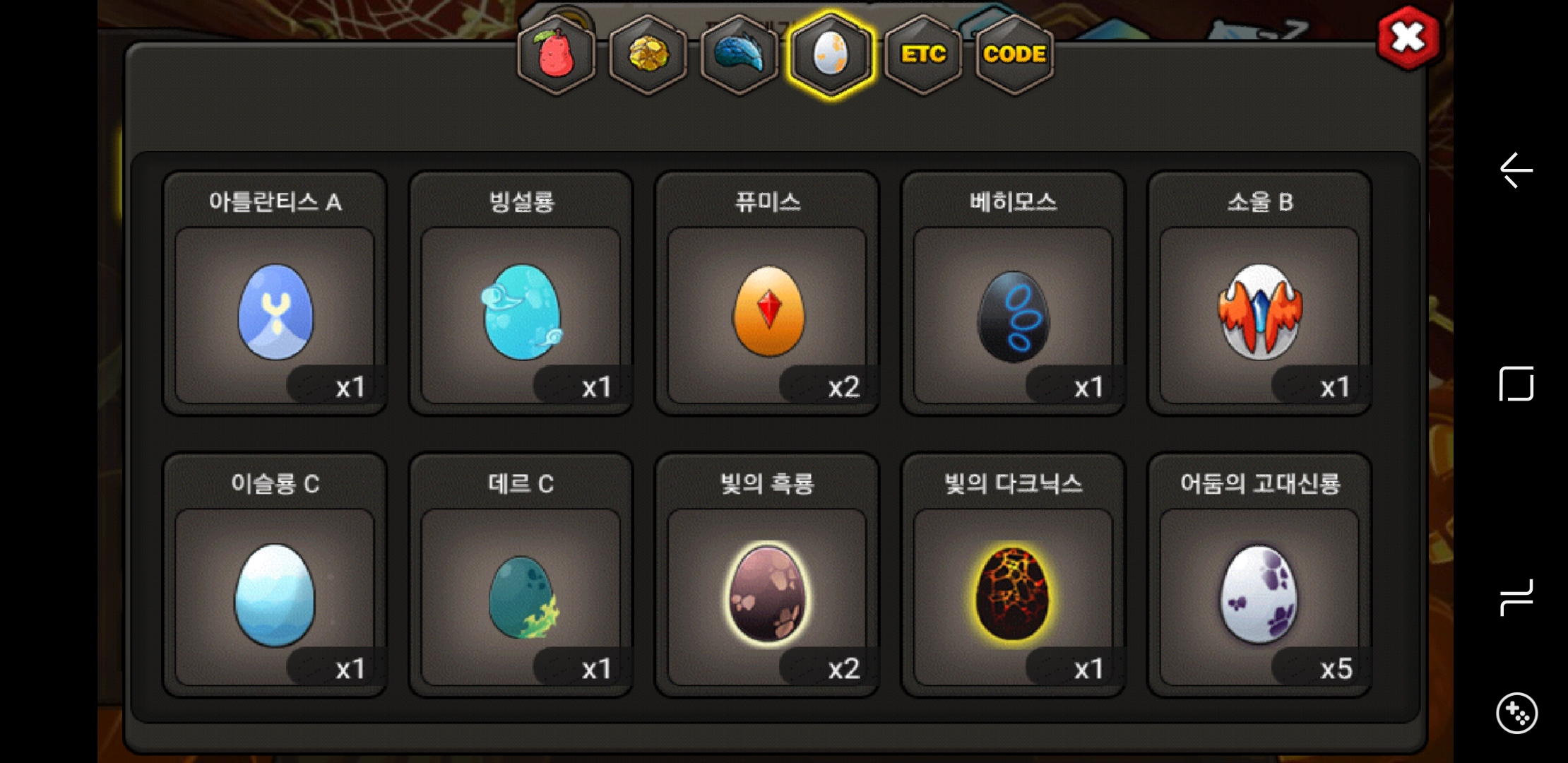 아틀란티스a, 빙설룡, 소울b, 디요나b, 스테고b, 오딘b 등등..