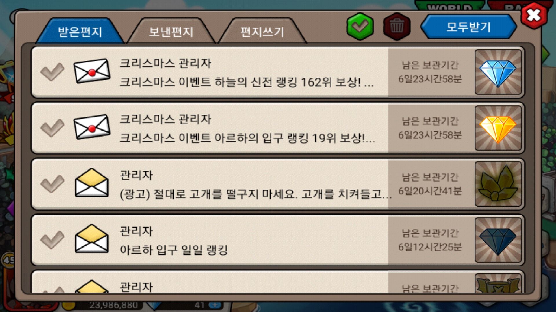 크마이벤 보상 도착!!